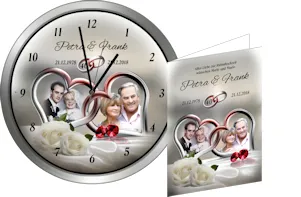 Die Rubinhochzeit ist ein besonderer Anlass für ein Geschenk von Eltern, Freunden oder Trauzeugen für 40 Ehejahre. Zusammen mit Ihrem persönlichenText wird diese Wanduhr ein besonderes Einzelstück. Wir beschriften das Ziffernblatt mit den Namen der Eheleute, dem Hochzeitsdatum und/oder Rubinhochzeitsdatum, einem passenden Spruch Ihrer Wahl, oder einem persönlichen Gruß.Vor der Fertigstellung erhalten Sie einen Entwurf per E-Mail oder WhatsApp zur Kontrolle. Erst nach Ihrer Druckfreigabe werden wir Ihre persönliche Uhr in unserer Manufaktur montieren.