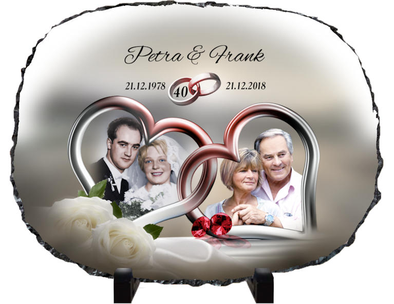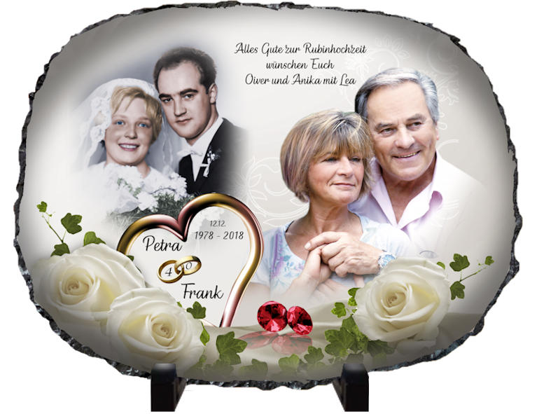 Ovale Schieferplatte als Erinnerungsfoto zur Rubinhochzeit
